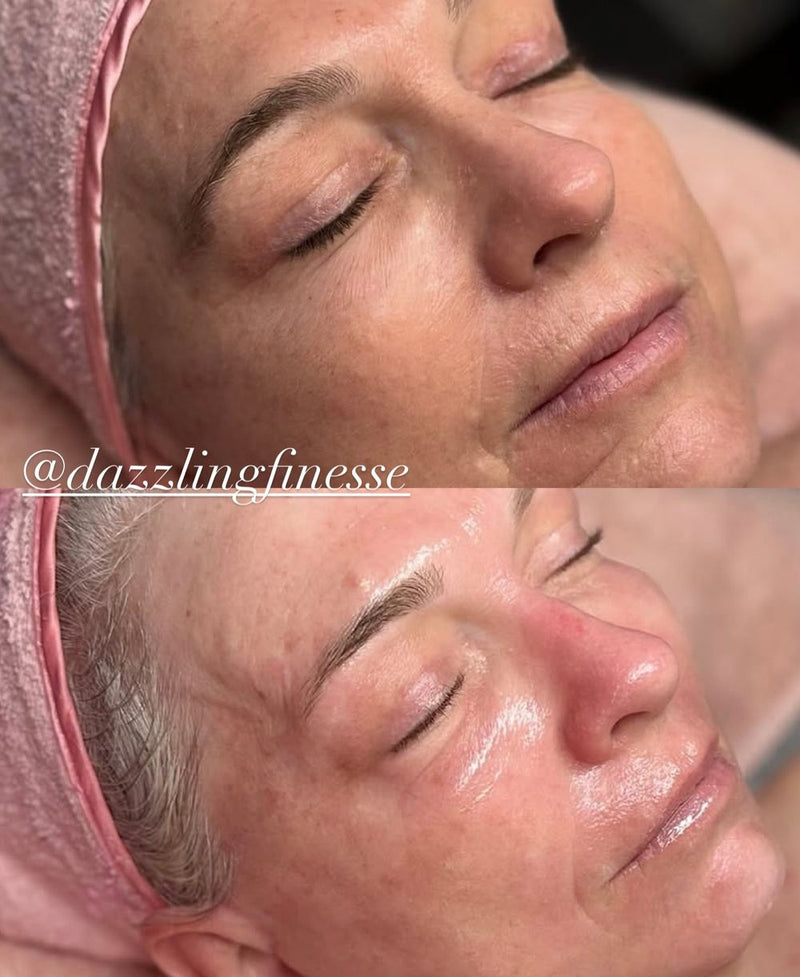 Updated dermaplaning course showing how to achieve a quick glossy dewy facial.